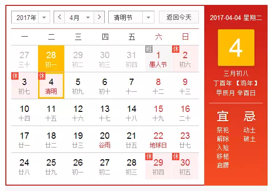 根据《国务院办公厅关于2017年部分节假日安排的通知》精神,结合我公司实际情况,现将我公司2017年清明节放假调休日期的具体安排通知如下。