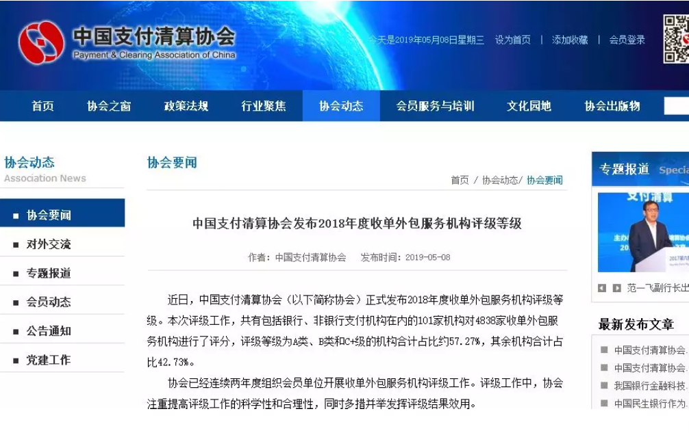 链接:中国支付清算协会发布2018年度收单外包服务机构评级等级http://www.pcac.org.cn/index.php/dongtai/list_details/ids/1062/id/55/topicid/4.html